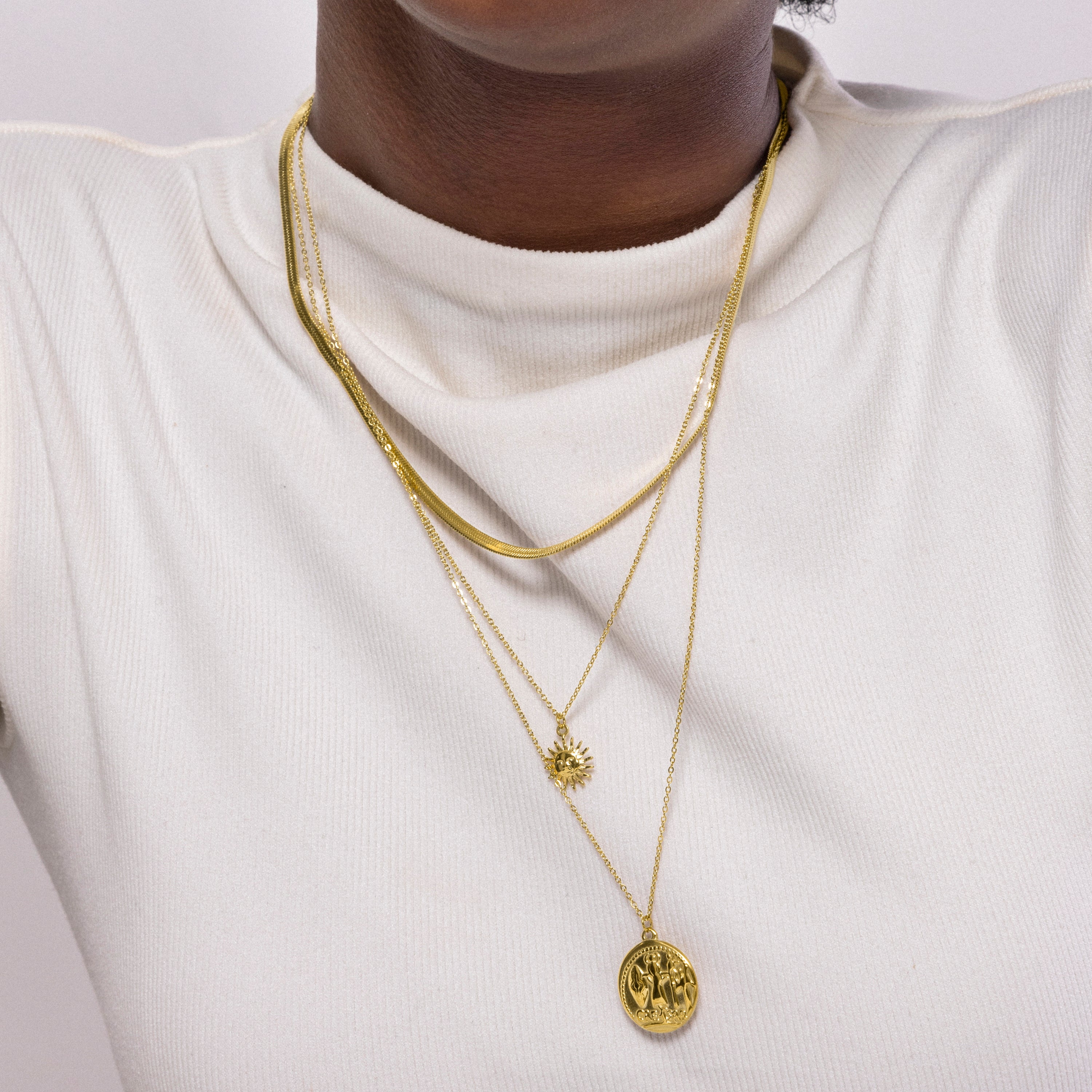 Colar de aço Wiga com acabamento em ródio. O estilo Boho é uma estética de espírito livre que mistura diferentes culturas e expressões artísticas num estilo eclético com ênfase nos elementos orgânicos e na natureza.