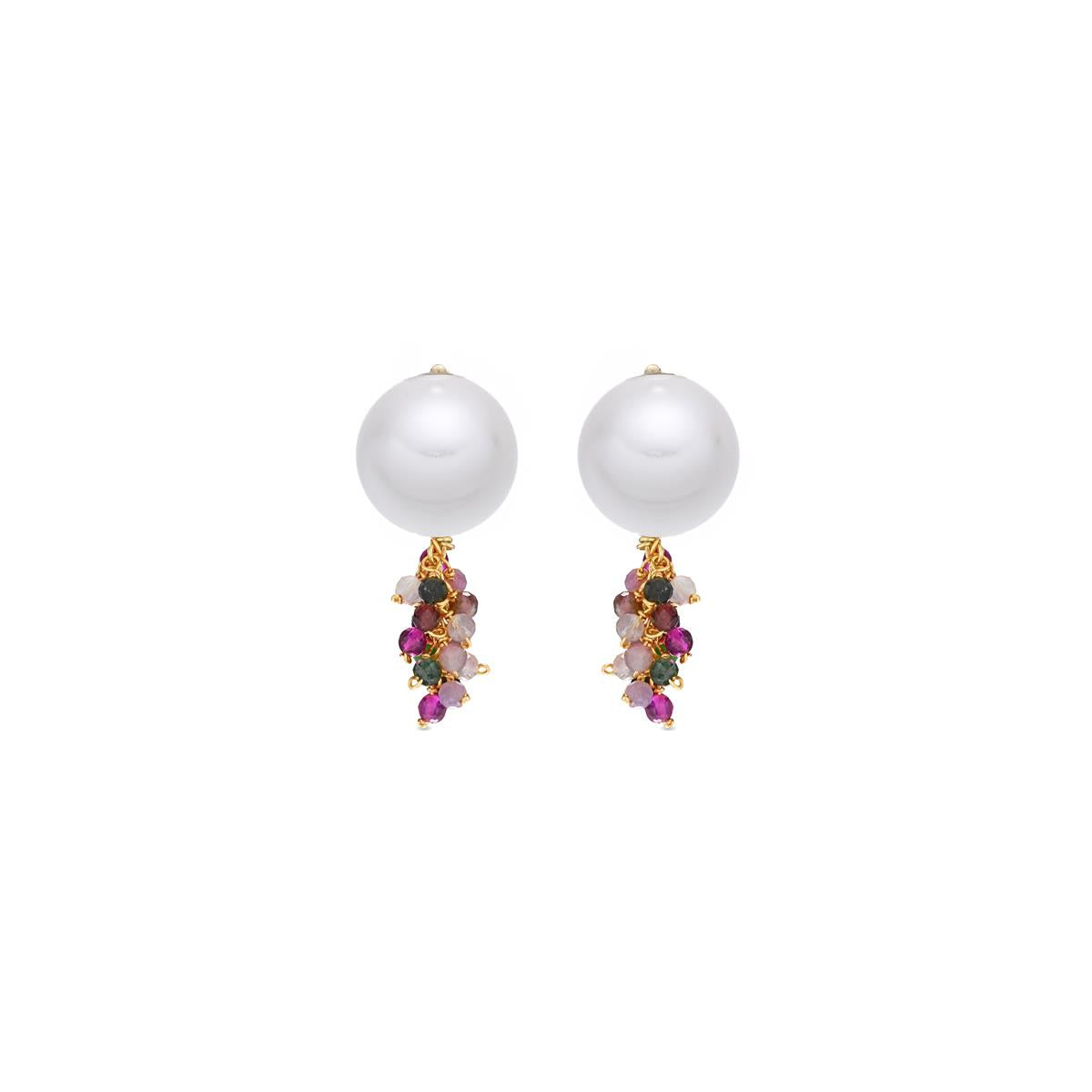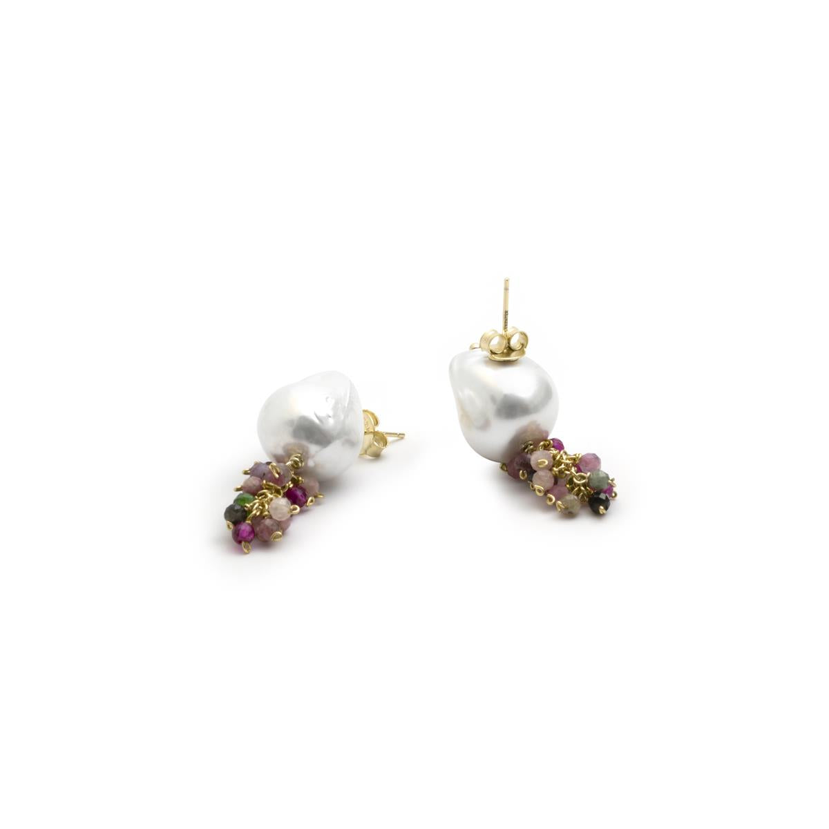 Brincos Druna em Prata de Lei 925 e Turmalina Multicolor com acabamento em ouro amarelo 18k